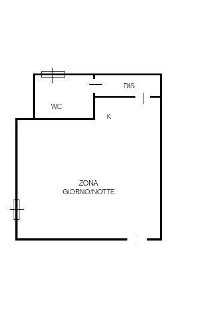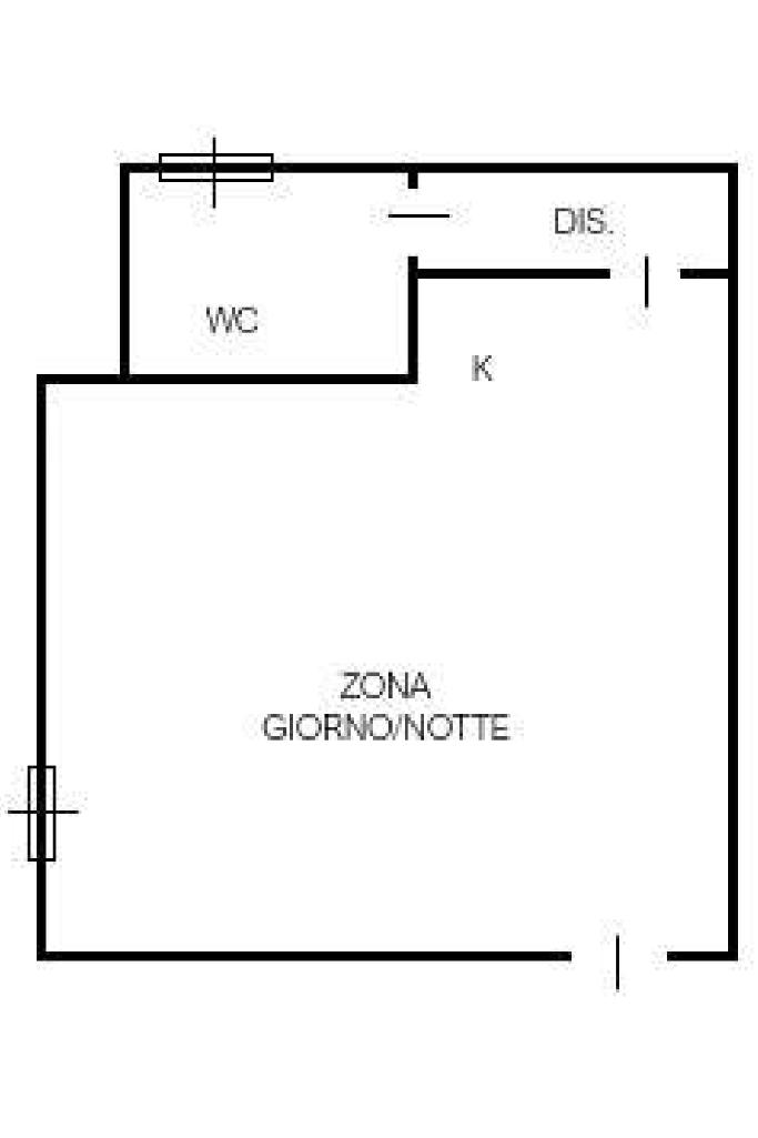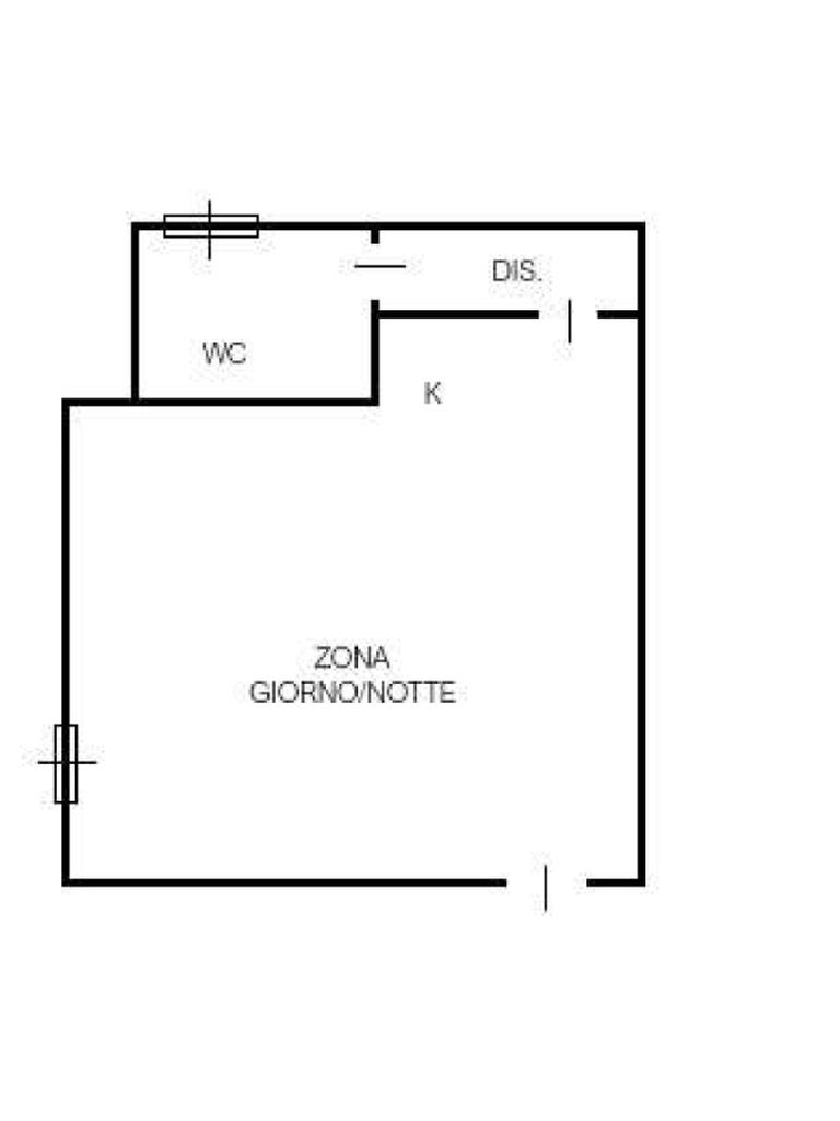 L'appartamento risulta essere così composto: Ingresso diretto nell’ ampia zona giorno – notte con cucina a vista, grande al punto tale da poterla realmente utilizzare sia come zona living che come camera.