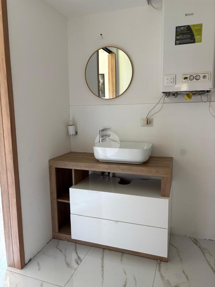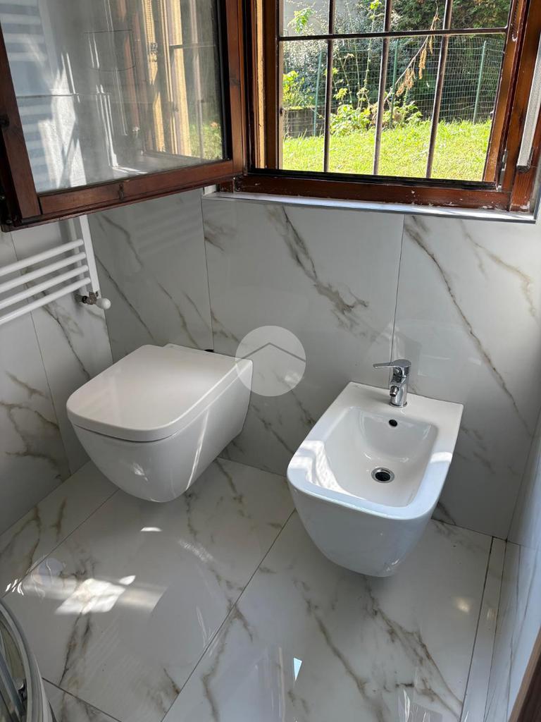 La zona servizi è composta da un antibagno e da un bagno finestrato, completo di box doccia.